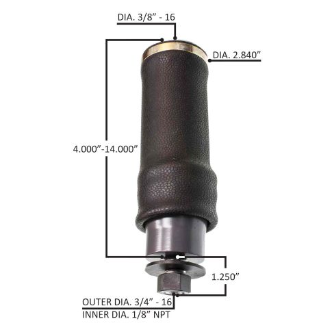 Cap Number: 7014Piston Number: 6906Top Plate Hole/Stud: 1Bottom Plate Hole/Stud: 1Extended Height: 14.00"Compressed Height: 4.00"BCR (Logo Color): 10.00" (Yellow)Top Plate Diameter: 2.84"Bottom Plate Diameter: 2.28". CROSS REFERENCES: PTR 29-03200, W02-358-7036, T81-6002-2, VTC-07902, 29-03200-2