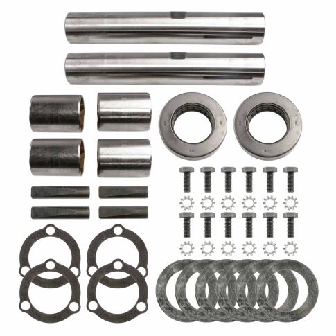 Additional Contents : (12) Screws, (12) Washers, (4) Gaskets, (4) Lock PinsBushing Type : BronzeKing Pin Diameters : 1.609 in.King Pin Lengths : 9.610 in.Related Bushing : (4) R210033Related Shim : (2) R210254Type : BType Description : Double Draw Key Notch. CROSS REFERENCES: 262-1491, E4447B, FKP45B, KP2286