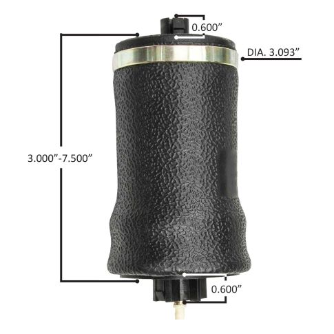 Compressed Height: 3.00"Extended Height: 7.50"Top Plate Diameter: 3.15"Push-to-connect air fitting in bottom. CROSS REFERENCES: ABP N32 027206, FI W02 358 7206, 18-29919-000, VTC-35102, 7206, FS 7206, M9-7206